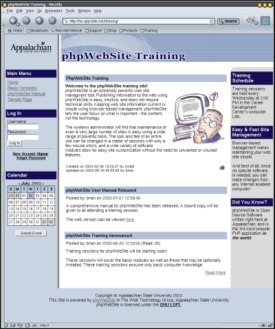 The page pictured below represents a fairly typical phpWebSite generated web page - no doubt you have seen something like it many times when surfing the web.